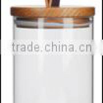 Home > Light Industry & Daily Use > Household Receptacle > Storage & Organization > Med Glass Round Canister With Rubber Wood Lid