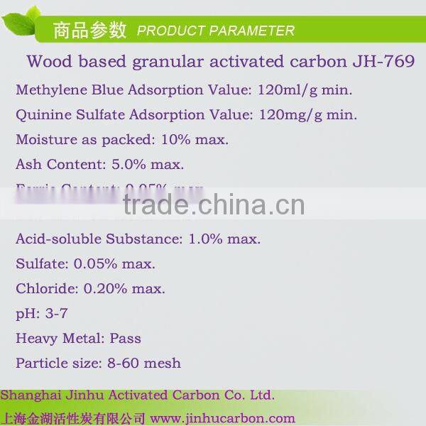 Acid wash wood based granular activated carbonUsage: filtration, bleach, decoloration, water & air purification