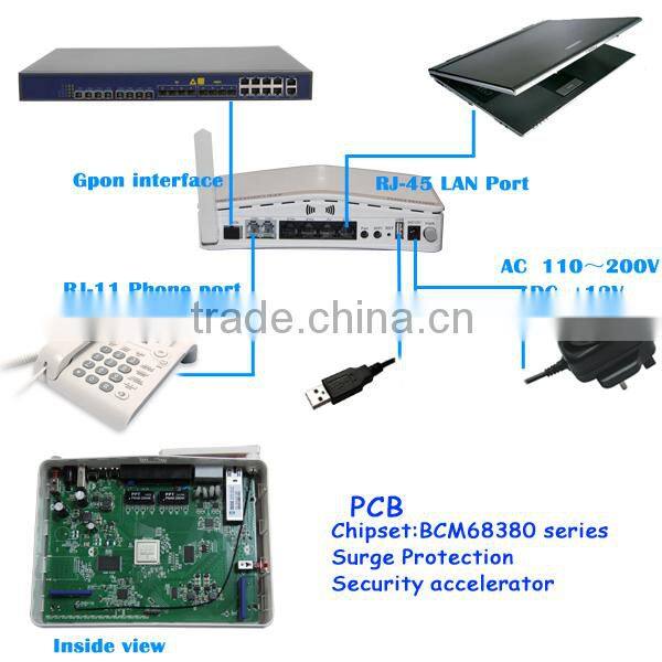 Home > Products > GPON ONT > 4GE+2FXS+WiFi+USB GPON ONT Wireless Router VoIP Home Gateway FTTH Modem for Smart Home/SOHO Solution Made in China