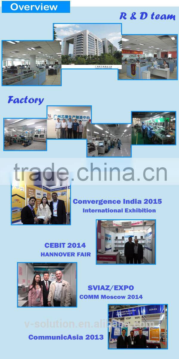 V-SOLUTION Telecommunication Technology Co., Ltd. is a professional manufacturer in China Guangzhou. Our company has established business relations with over 50 countries worldwide and more than 100 companies . We devote to product GEPON ONU, GEPON OLT, GPON ONU, VoIP Gateway, Fiber CPE, Wifi Module, and so on.