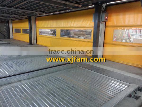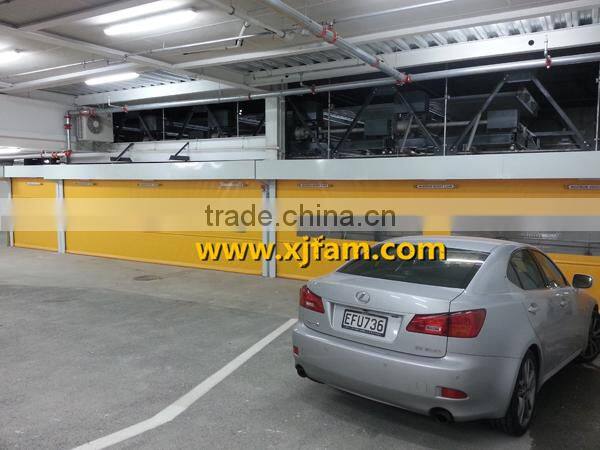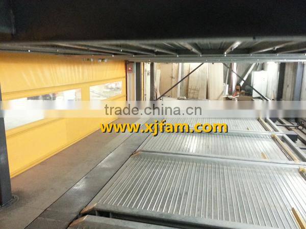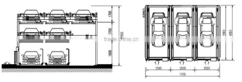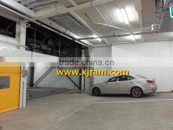In this system, a pallet is used in each parking space. The whole ground floor can be entrance/exit. The driver needs back his car onto the pallet to park. This system can accomadate maximum 7 levels.