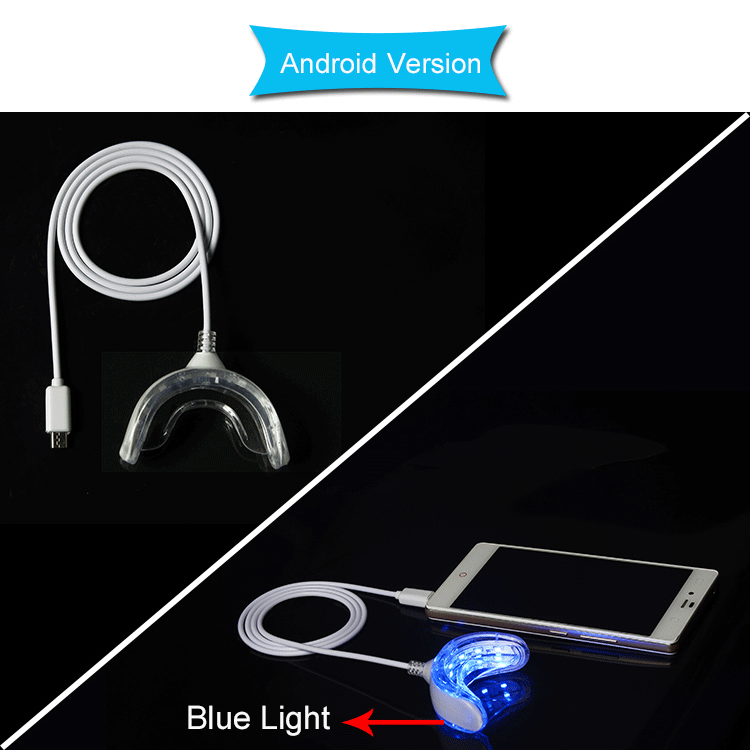 3.Turn on the LED light, then hold the light as close to your teeth as possible for the duration of the whitening treatment.