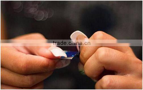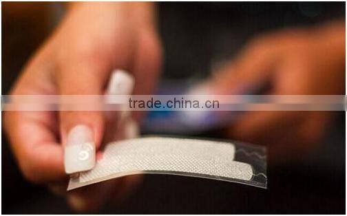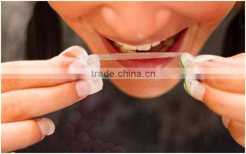 1. Take an edge, pull the soft strip off the plastic film, face the gel side to the surface of teeth.