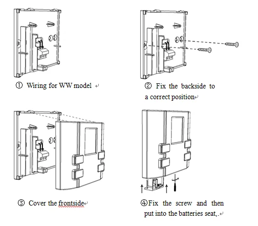 Power for thermostat: 2X1.5V AAA alkaline batteries.