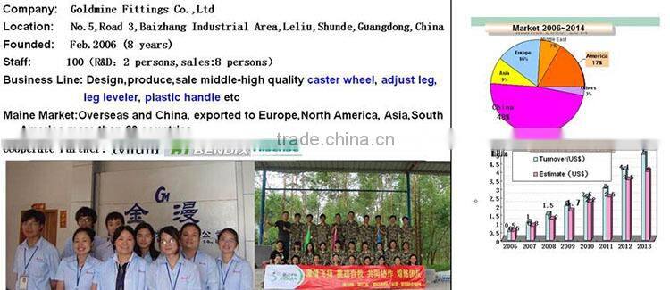 There are two kinds of casters in our factory ,one is furniture caster which can be used as furntiure accessories ,such as chair caster wheel and the other is industrial caster,it is widely used in various industries,including medical casters wheel,supermarket shopping trolly casters and elevator caster wheel etc