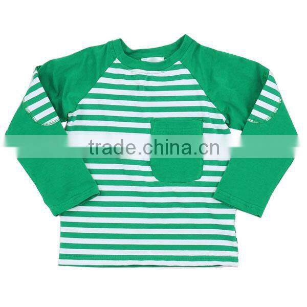 Wholesale 2016 latest design green stripe baby boy cotton raglan pockets design fashion kids boys knit shirts |