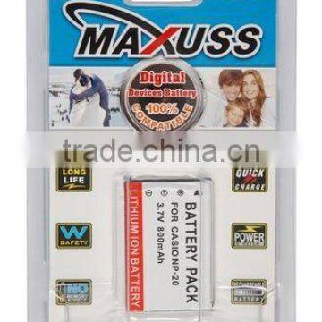| Features | 1)Replacement camera battery for CAS. NP-20. 2)With CE/ UL/ ISO certification. 3)Using superior quality cell, high durability with extra power. 4)Built in rechargeable battery protection circuits,highly safe. 5)Without memory effectc. 6)OEM,ODM is acceptable. |