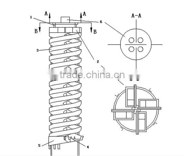 1. Channel steel support 2. Feeding box 3. Helical sluice 4. Product separator 5. Collector 6. Distributor