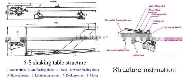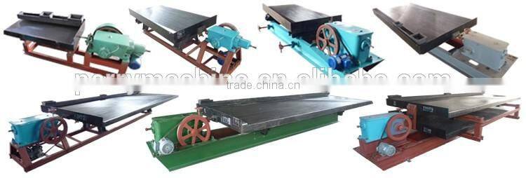 The Gold Shaking Table is also widely used in separation for Gold, Silver, Tin, Columbium, Tantalum, Titanium, Barium, Tungsten, Iron, Chrome, Manganese, Zircon, Lead, Zinc, Mercury, Copper, Aluminum, etc. The shaker effective recycling granularity scope s 2-0.22mm.