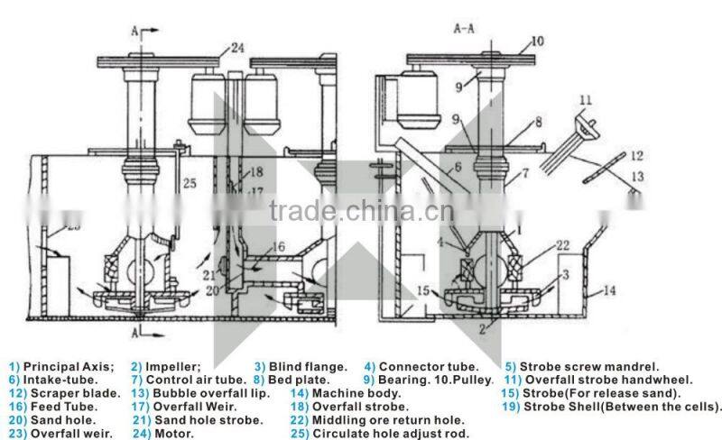 - Complete flotation circuit with inhaling air and slurry, no auxiliaries are needed.