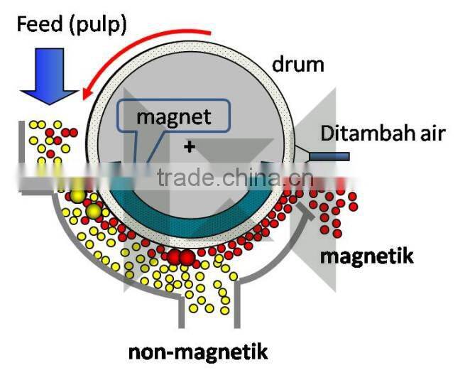 - It is suitable for the magnetic separation of the magnetite, magnetic pyrite mine, baking, titanium iron ore material and other materials whose particle sizes are lower than 3mm.