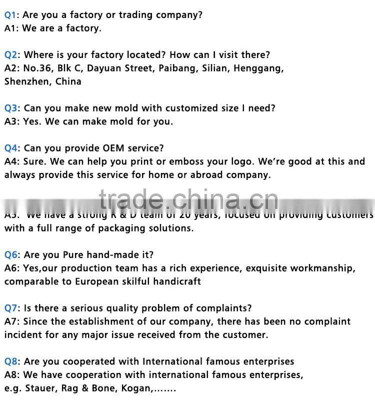 | 10 | Interior materials | Can be customized,paper,velvet,foam,suede,etc. |
