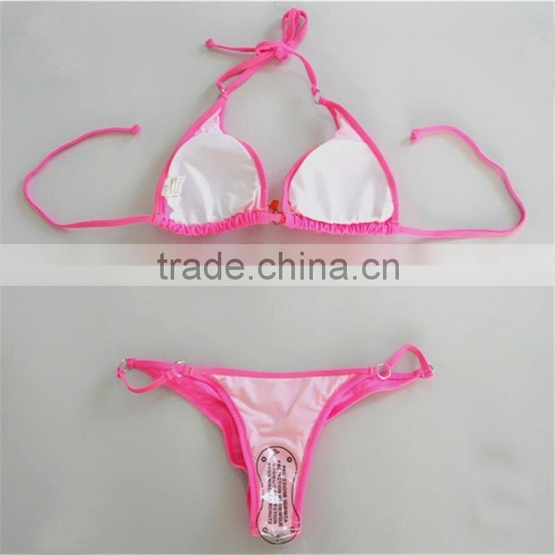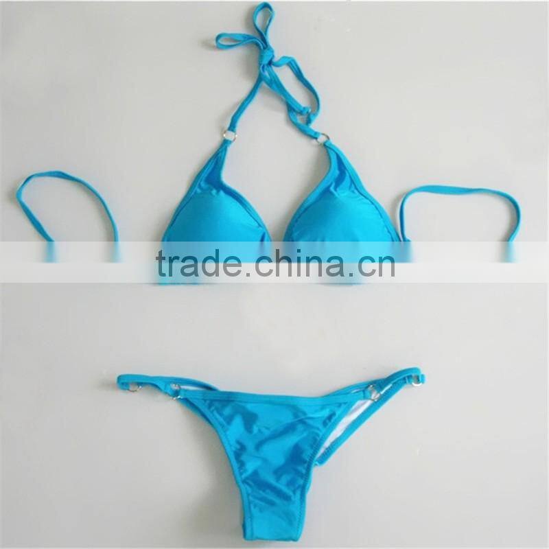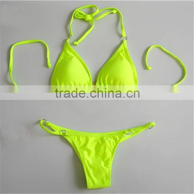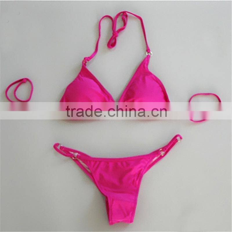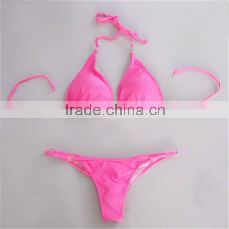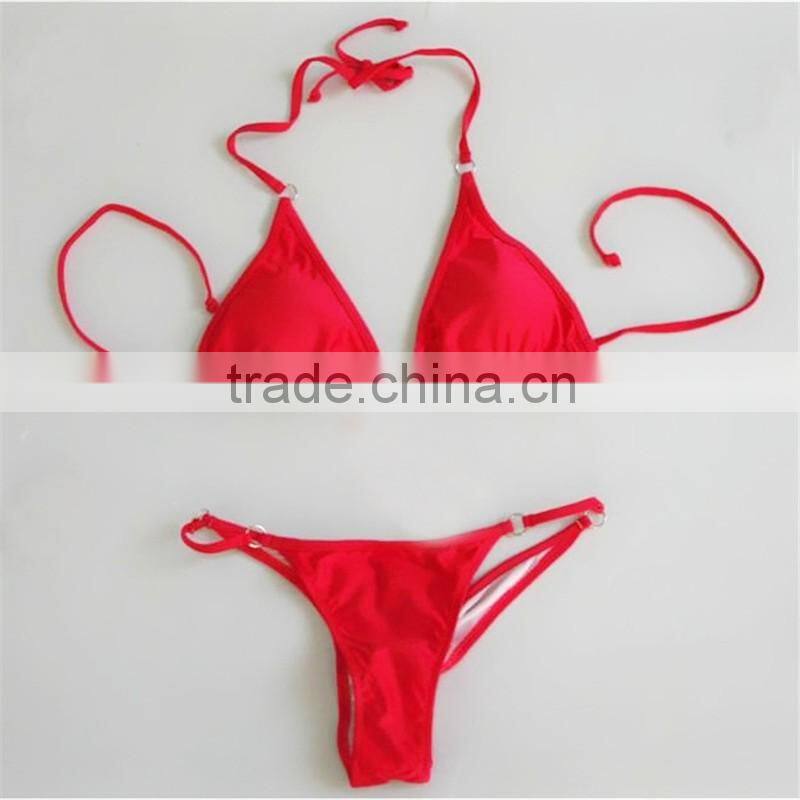 Sexy plain color 2 piece bathing suits swimsuit women thong bikini with ring