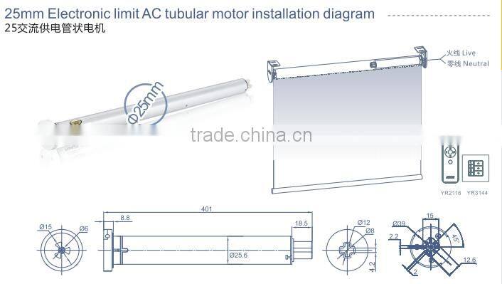 roller blind motor 25mm tubular motor with remote control