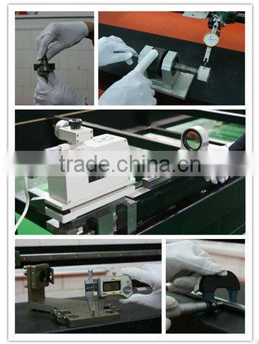 B: Use the collimator to install and adjust guide rail, precision: 0.01mm. Synchronizing wheels bouncing testing to avoid saw tooth when cutting and precision reaches 0.02mm.