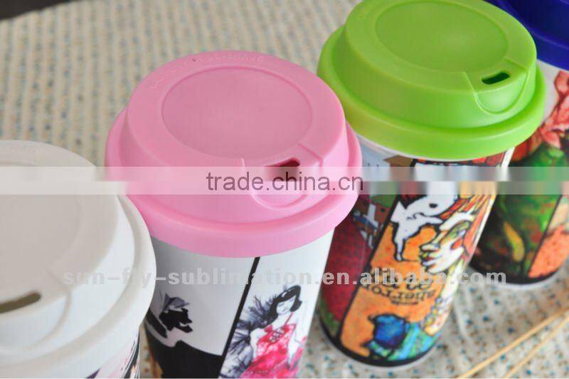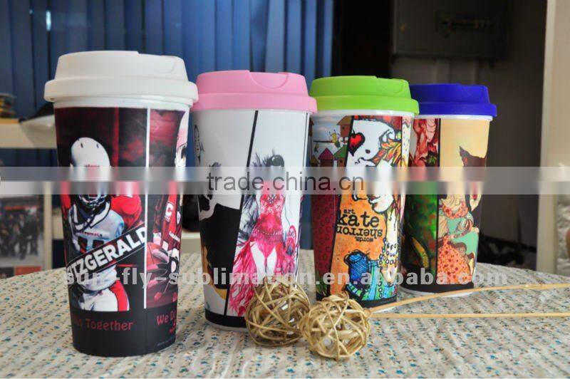 The polymer tumbler can be dye-sub printed with full size image on its whole body, you are able to create any of your own images, logos or slogans in full color on its surface by using regular sublimation printing technique.