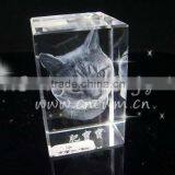 Vivid Promotional 3D Laser Crystal Cat For Souvenir Gifts