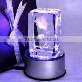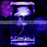 Beauty Crystal Flower 3D Laser Rose With LED Crystal Wedding Gifts