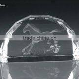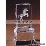 New Design 3D Crystal Rectangle With Horse For Business Souvenir