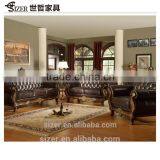Living Room Spanish Leather Sofa and Classic Wood Frame Leather Sofa