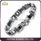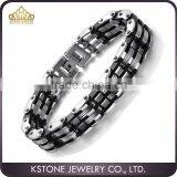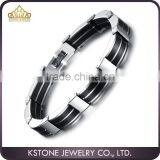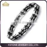 KSTONE 2015 Best Selling 316L Stainless Steel Black Silicone Bracelets for Man