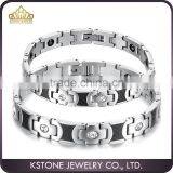 KSTONE 2015 New Fashion 316L Stainless Steel Black Silicone Bracelets for Couple