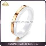 KSTONE Stainless Steel Rose Gold Edge Bands White Ceramic Ring, Ceramic Rings for Women