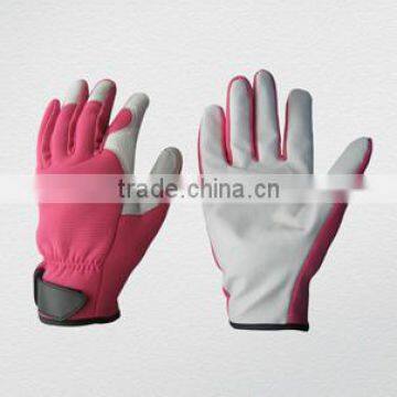 Pink Color Pig Skin Leather Mechanic Gardening Glove-7317