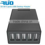 5V 8A Five Ports Desktop USB Charger Adapter With SmartIQ Technology for Apple Smartphones, Tablets and Many Other Devices