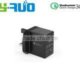UK EU, US Plug Qualcomm Certified Quick Charge QC 3.0 /2.0 Wall Charger Passed UL, ETL, FCC, CE