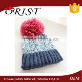 Wholesale Crocheted Knit Hat With Ball Top Woman Winter Cap