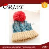 Wholesale Crocheted Knit Hat With Ball Top Woman Winter Cap