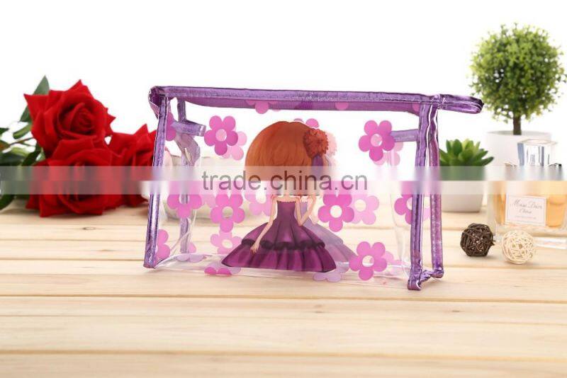 Clear Promotional Waterproof Washing Reiception Beautiful Pvc Zipper Cosmetic Plastic Bag
