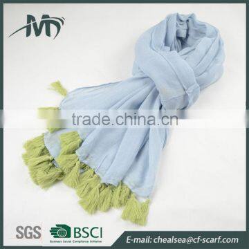 100% viscose lady scarf women contrast color tassels lace scarf