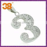2013 New Fashion Number Pendants With Rhinestones Pendant for Couples Lucky Numbers 3 Stainless Steel Energy Pendant