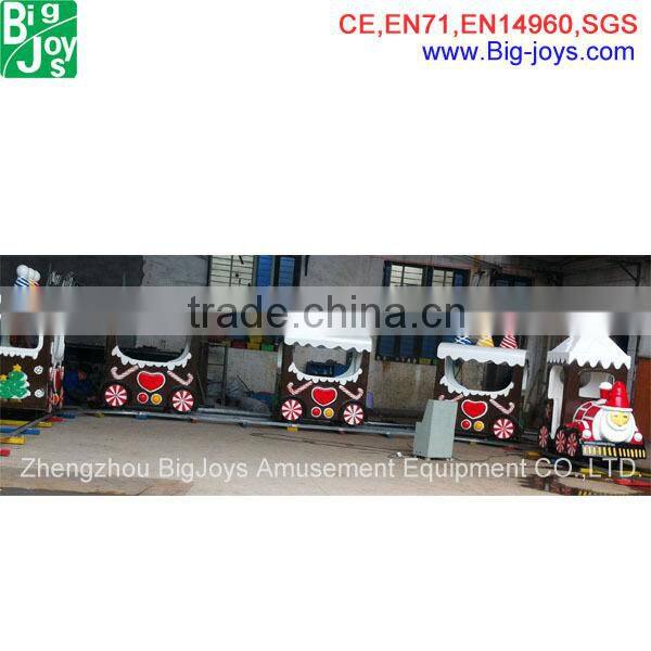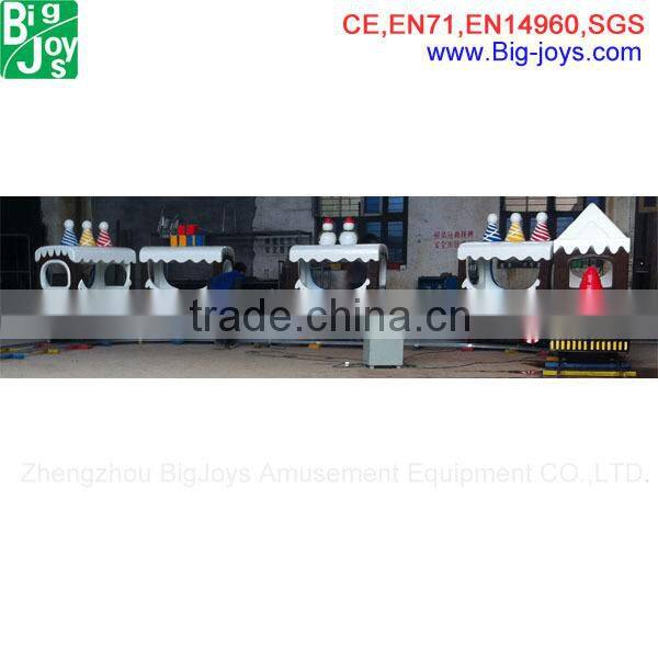 Electric Train from BigJoys has 4,6,8,12,14 an even 26 seats with different design of train carriage. Regular track shape for the electric train is round,oval.and customized track like U shape, 8 Shape are also can be made.