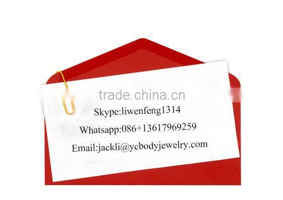 Yiwu Yacan Jewelry factory was founded in 2000,mainly produces high quality septum clickers,earrings,,lip rings,,necklaces,,nipple rings,navel rings, and other stainless steel jewelry and copper jewelry.
