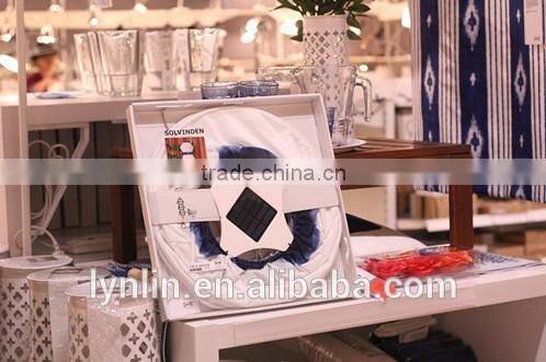 The printed knit fabric are used for lantern that we preduced last year, these products are hot saling on global market of IKEA now