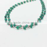 Natural Multi-Color Gemstone Bezel Beaded Chain 925 Silver Green Onyx