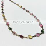 Natural Multi-Color Gemstone Bezel Beaded Chain 925 Silver Amethyst Tourmaline Moonstone Labradorite