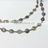 Natural Multi-Color Gemstone Bezel Beaded Chain 925 Silver Labradorite