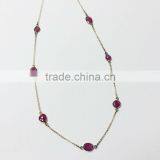 Natural Multi-Color Gemstone Bezel Beaded Chain 925 Silver Ruby