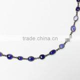Natural Multi-Color Gemstone Bezel Beaded Chain 925 Silver Amethyst