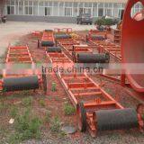 The machine is mainly composed of machine frame, transporting belt, belt roller, tension and rotation devices, etc. The main body adopts high quality steel plates, and the machine rack forms according to the height differences between front and hind legs, the conveying belt is fixed at an inclination angle. The rack is equipped with belt roller, supporting roller etc. to drive and support the transmission belt. There are two driving modes: deceleration motor and electric cylinder.
