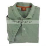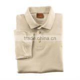 100% preshrunk cotton; double-needle stitching throughout; contoured welt-knit collar and cuffs; three-button placket, woodtone buttons