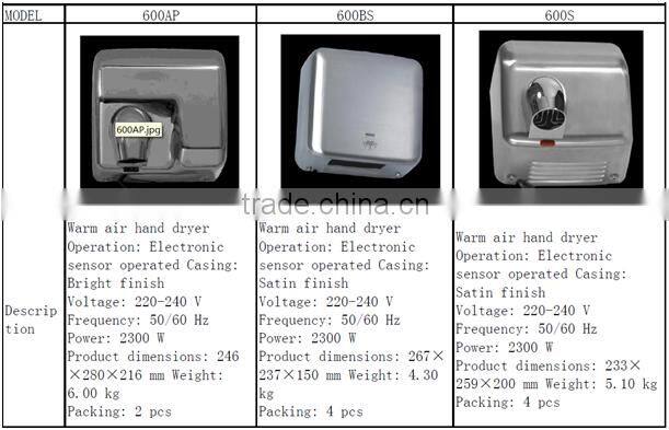 Low Noise High Speed Auto Sensor Electric Hand Dryer WT-600(S)