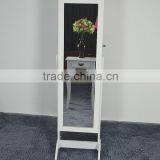 Necklace Jewelries Wood White Standing Mirror Display With Cabinet Bedroom