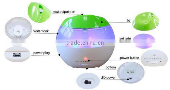 1.The ultrasonic humidifier decomposes water molecular into 1-5um particles by2.4MHZ/S frequency vibration ultrasonic technology.