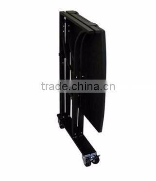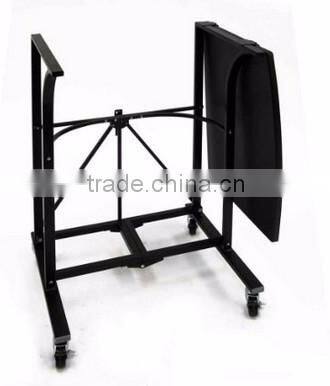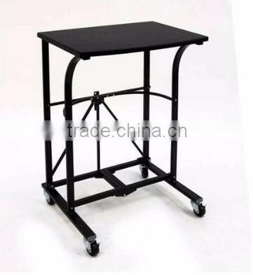 Foldable laptop trolley constructed of durable powder coated steel frame with swivel wheels for easy transportation and eautiful, sturdy wood table top