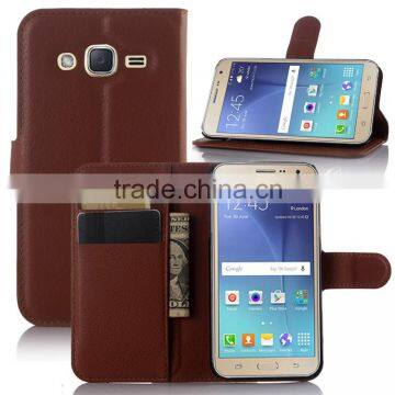 Hot Selling Ultra Thin Lichee PU Leather Case Wallet Folio Flip Cover for Samsung GALAXY J3